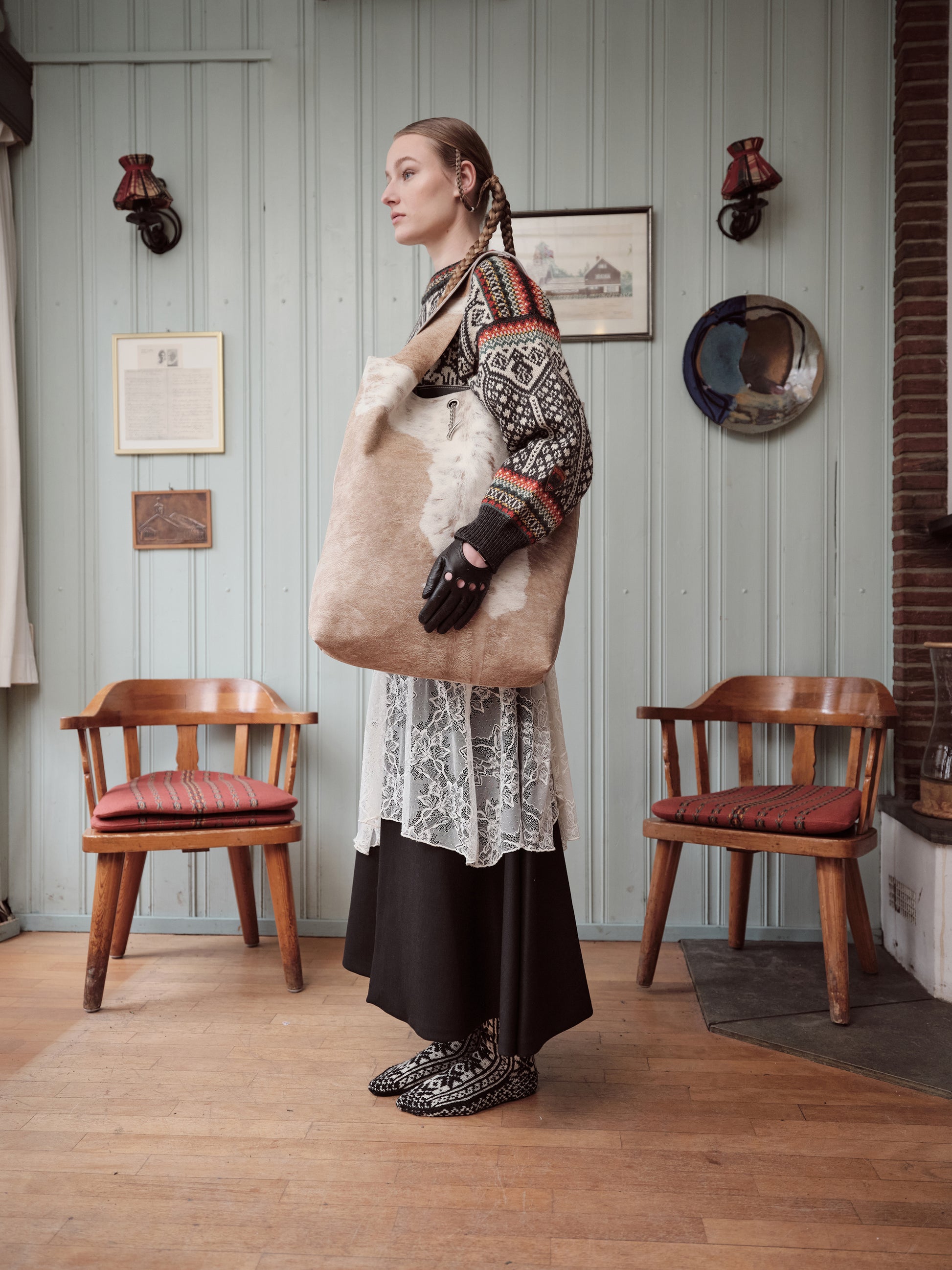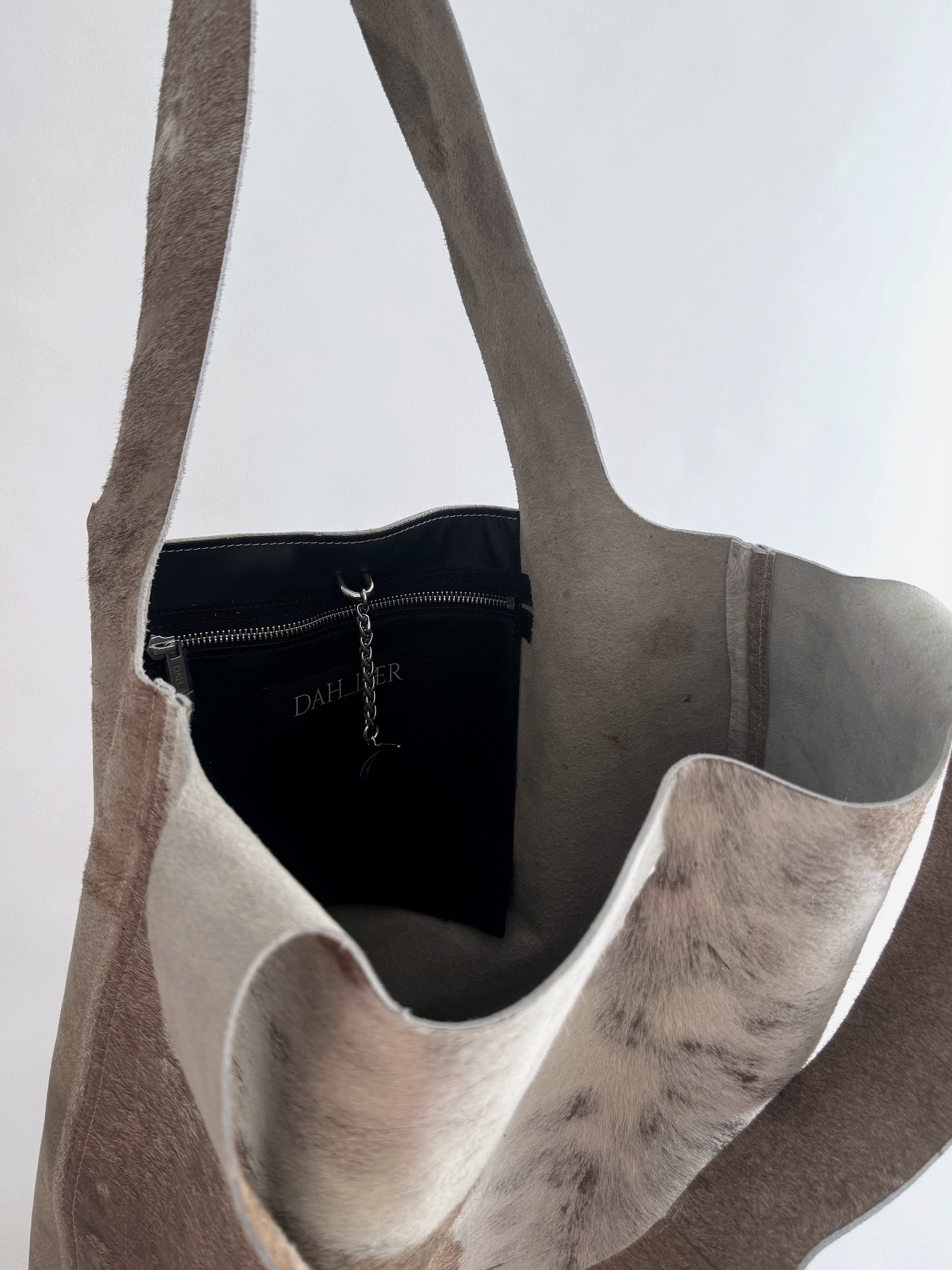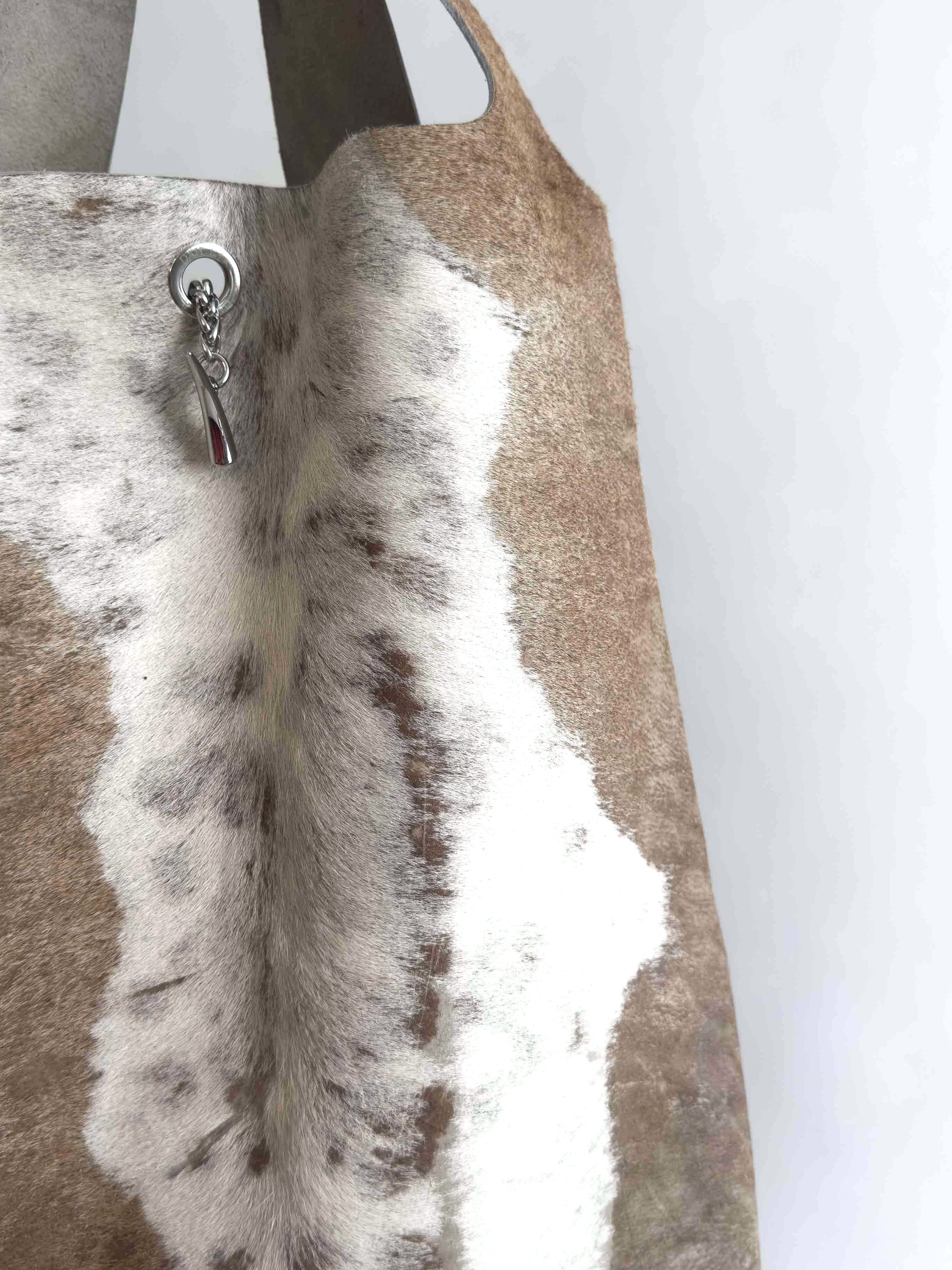 PLEASE NOTE, THE MATERIAL MAY SHOW SOME IMPERFECTIONS, WEAR AND SUBTLE CHANGES IN COLOR. THE PIECES OF LEATHER THAT FORM THIS BAG HAVE EACH LIVED THEIR OWN QUIET STORIES. WE BELIEVE THESE MARKS ONLY ADD TO THE BAG´S UNIQUE PERSONALITY AND ATMOSPHERE. OVER TIME, THE LEATHER PONYHAIR WILL DEVELOP ITS OWN STORY WITH REGULAR USE.